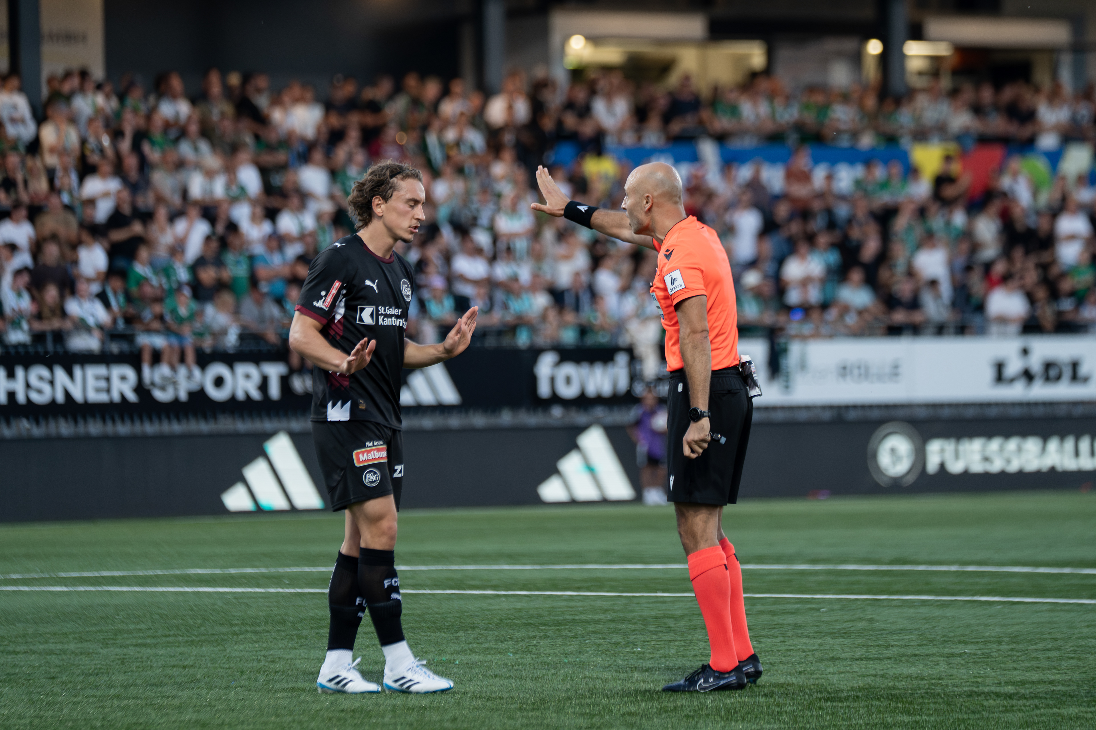 An intense cup match at the LIDL Arena in Wil. Regional rivalry, strong emotions, and pure floodlight atmosphere. My focus was on capturing the action on the pitch authentically: the concentration before kick-off, the dynamics of the plays, and the emotions of the players in decisive moments. Particularly appealing were the changing lighting conditions between the evening sun and the floodlights, which gave the match its own unique atmosphere.