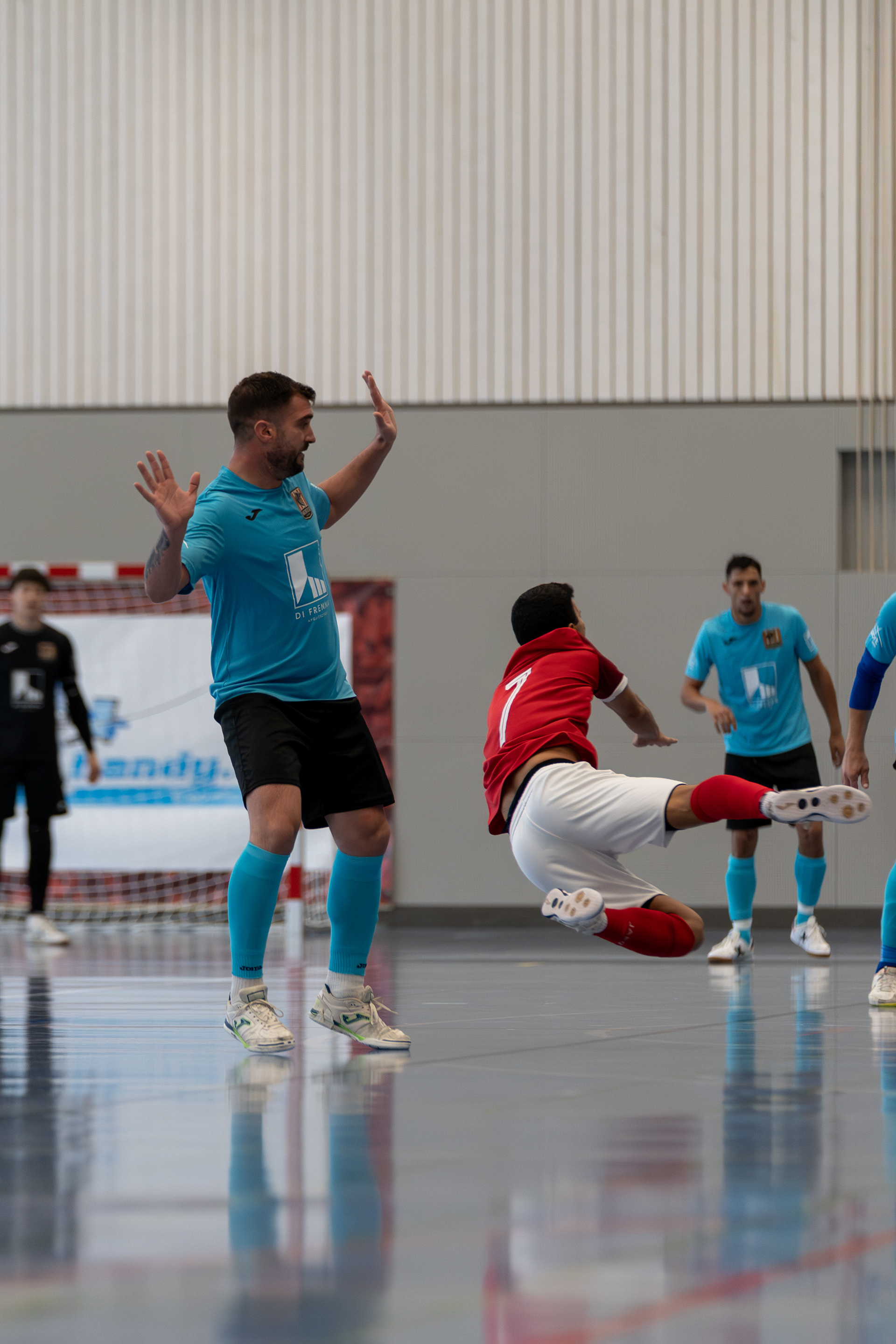 I occasionally have the opportunity to photograph futsal matches of Benfica Rorschach in the indoor sports hall. The fast pace of the game, precise ball movement, and intense duels make this indoor sport particularly exciting. My aim is to capture the dynamics, emotions, and team spirit authentically within this compact indoor setting - from the tension before kick-off to the decisive moments on the court.